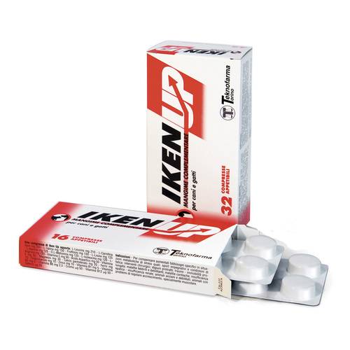 Iken UpMANGIME COMPLEMENTARE PER CANI E GATTI Per compensare aumentati fabbisogni nutrizionali specifici in situazioni metaboliche di stress quali: sport impegnativi, condizioni di fatica, interventi chirurgici, digiuni protratti, traumi - immobilità prolungata, malattie febbrili e debilitanti, malattie cardiache, insufficienza epatica, insufficienza renale, animali anziani e debilitati, animali con problemi di regolare accrescimento, specialmente muscolare. Modalità d'uso Mezza o una compressa ogni 10 Kg di peso una o due volte al giorno secondo l'entità dello stress e a giudizio del Veterinario. Somministrare le compresse direttamen...